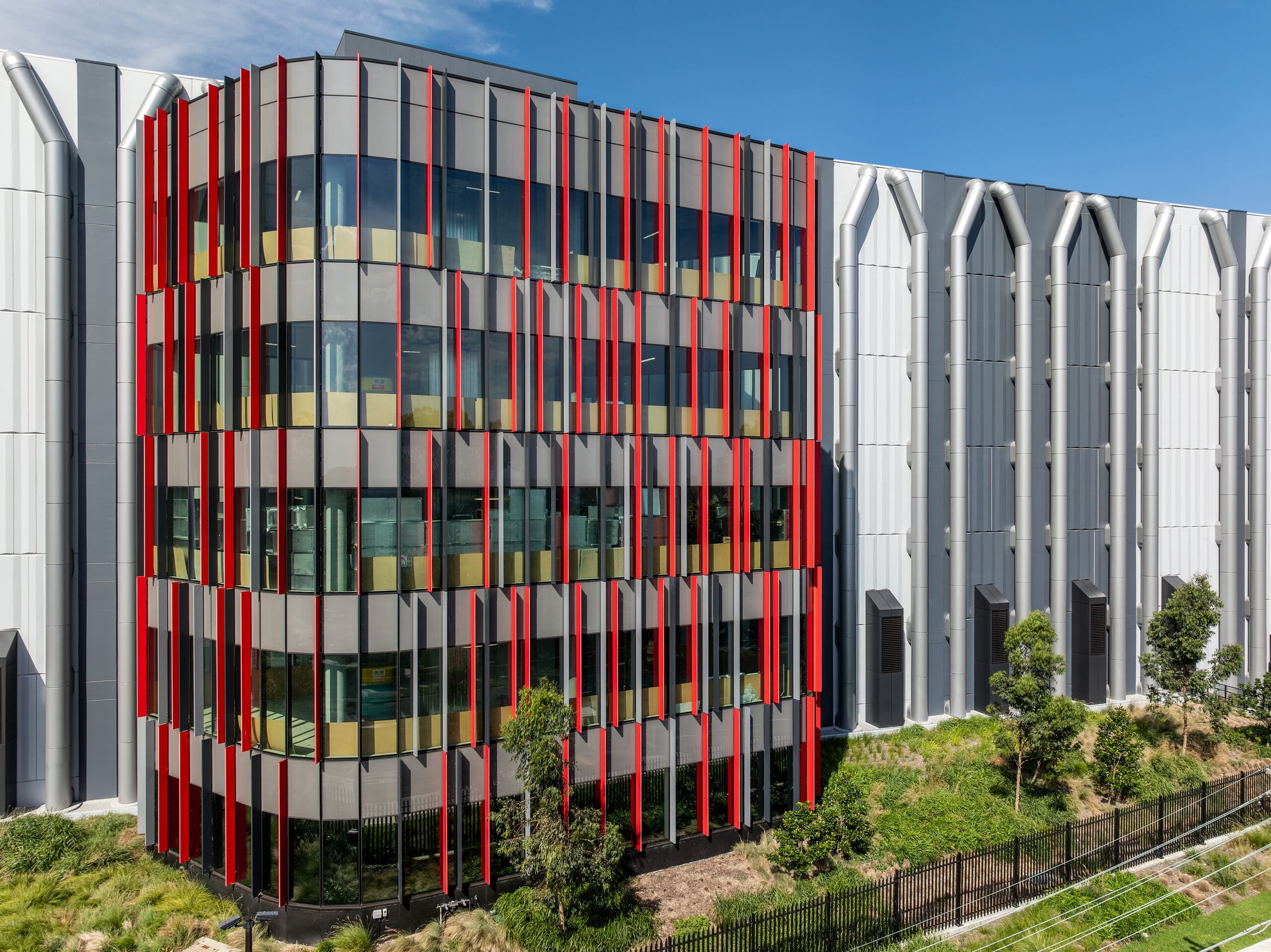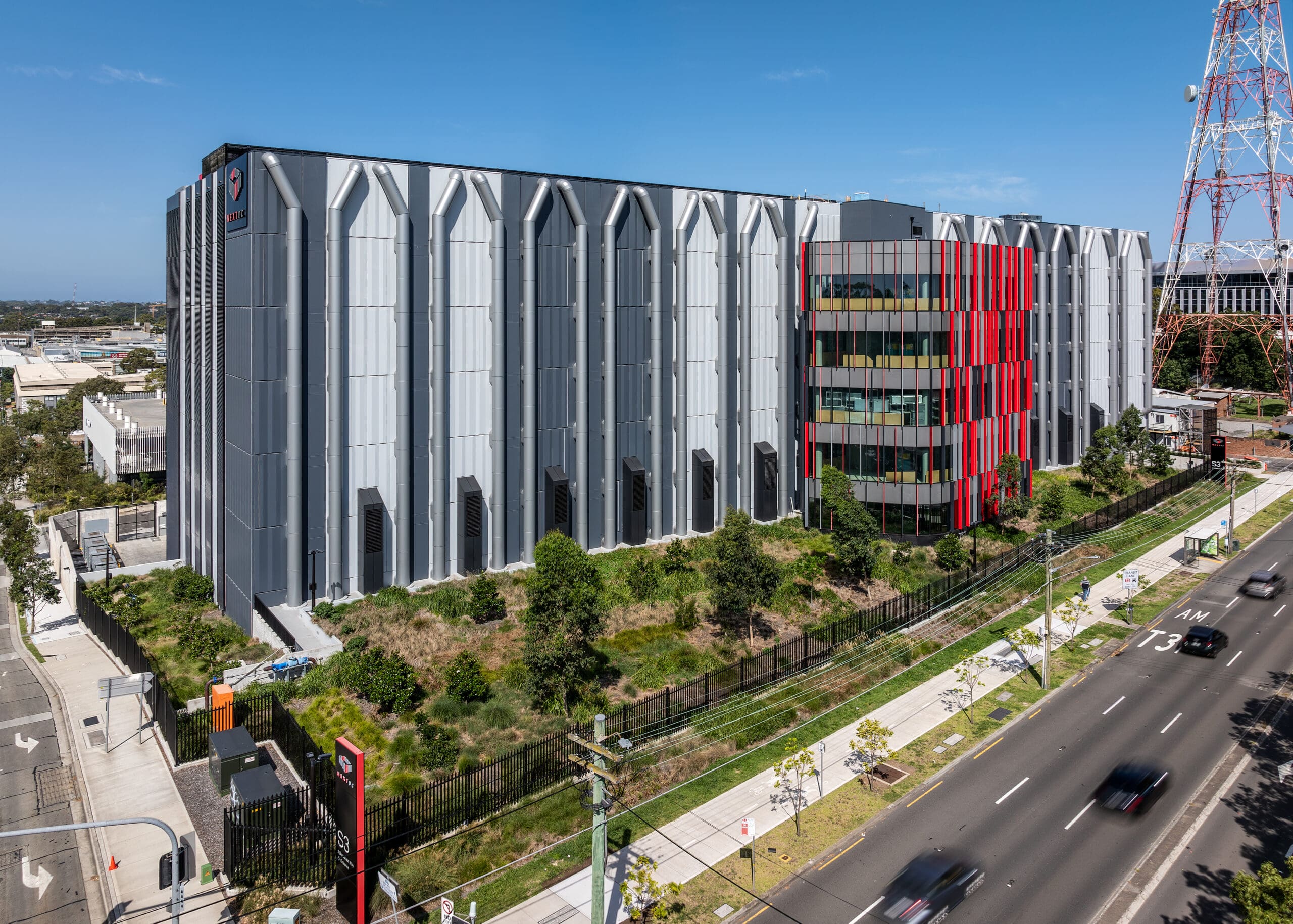Located in Artarmon, just 10 kilometres from the Sydney CBD, S3 is a state-of-the-art facility designed to meet the growing demand for secure data storage and interconnected cloud systems. The 80MW, nine-level building spans more than 26,000 square metres and combines technical performance with thoughtful design. In addition to its core function as a data centre, the facility includes client-focused amenities such as reception areas, dedicated meeting spaces, and a 73-seat auditorium, positioning it as both a technological and business hub.