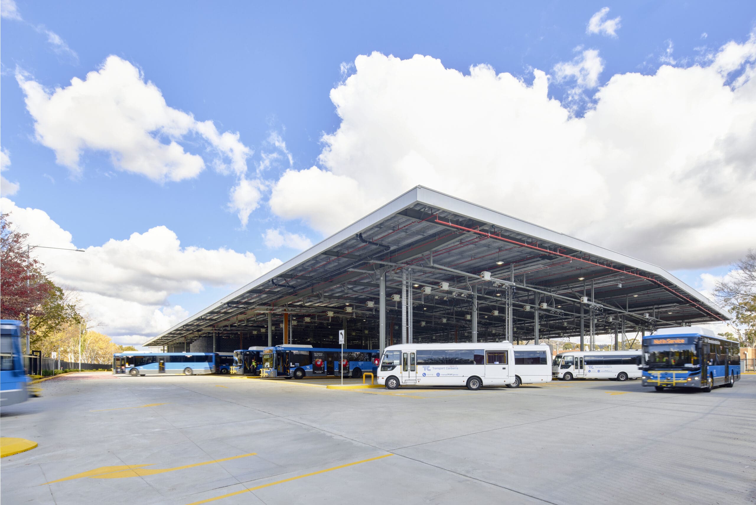 The Woden Bus Depot is a future-ready facility supporting both diesel and electric buses. It includes modern workshops, charging infrastructure, and centralised admin spaces to boost fleet reliability and coordination. Designed for long-term growth, it strengthens Canberra’s public transport network and supports the shift to more sustainable travel.